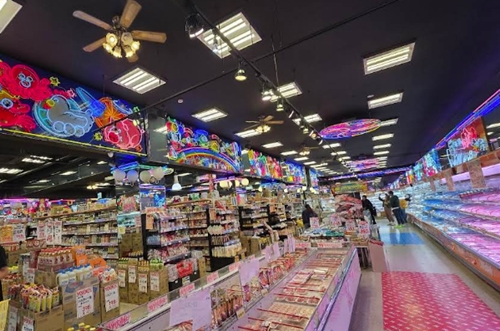 店舗の外観はパンチコ店のようなネオンでド派手な外装や内装で、大阪らしい安売りスタイルで地域に根付いているスーパーです。